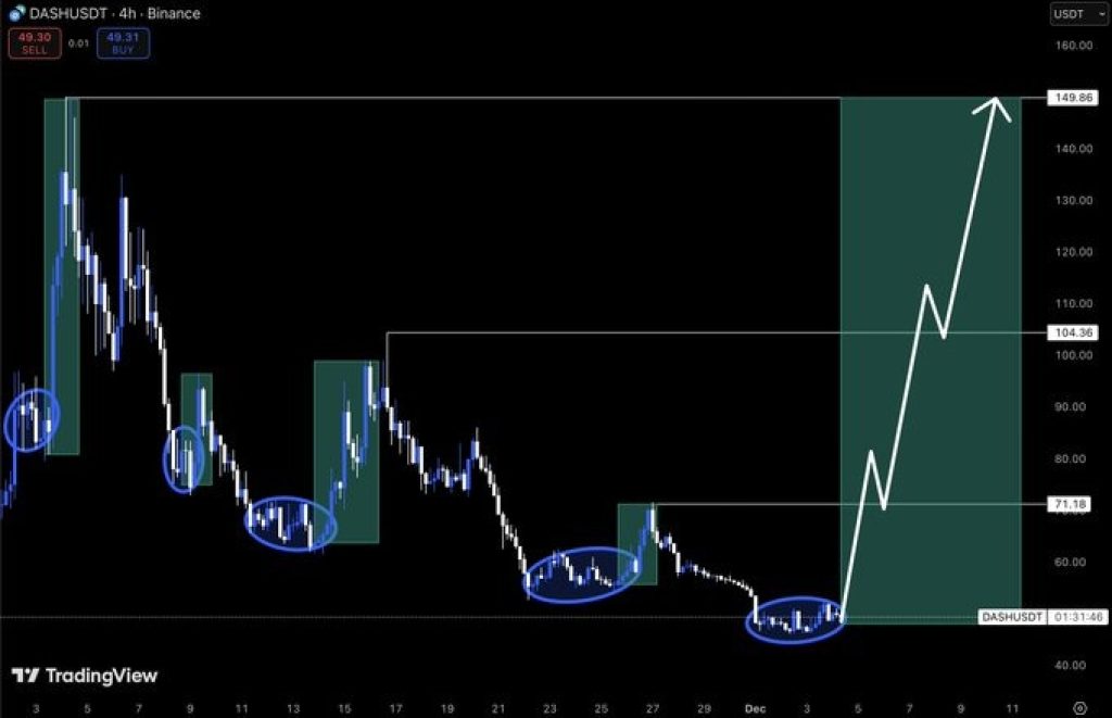 If the DASH price follows its usual rhythm, this accumulation zone may indeed be the beginning of its next impulsive leg.