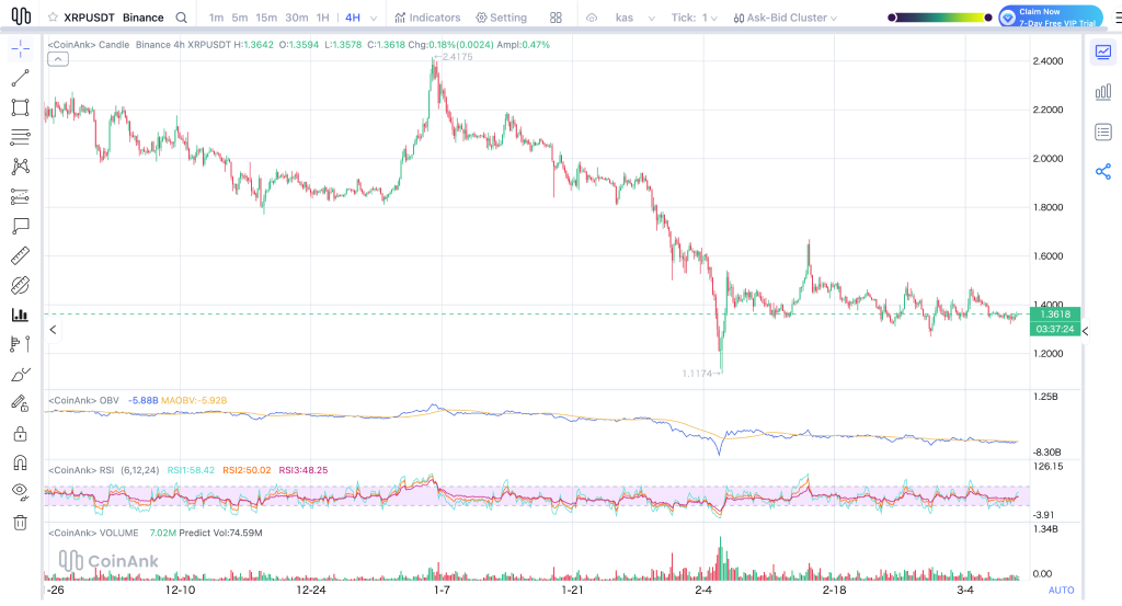 The XRP price on the charts has a different feel to it. Currently, XRP is trading around the $1.3618 level on the 4-hour chart and is stuck in an extremely constricted range with minimal movement over the last few sessions. Such an extremely constricted range is often an indication of an impending movement in the asset.