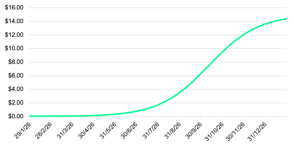 DSNT price targets reflect such a strong market pull. At 1.75 million users, DSNT is targeted at $5; and at 6 million users (which is only 1% of the target market), it is expected to reach $13.5. This milestone should be reached at the end of the year, as the following chart shows: