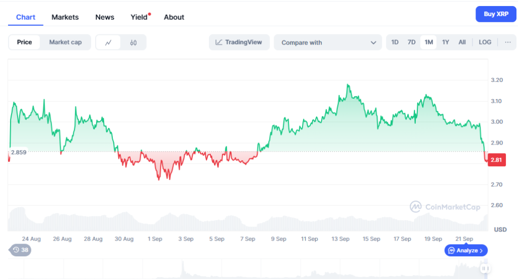 Ripple has fallen below $3.00 after a 6.9% drop on the 7D timeframe. CoinMarketcap data reveals that the Ripple price has been consolidating between $2.80 and $3.15 in the past week.
