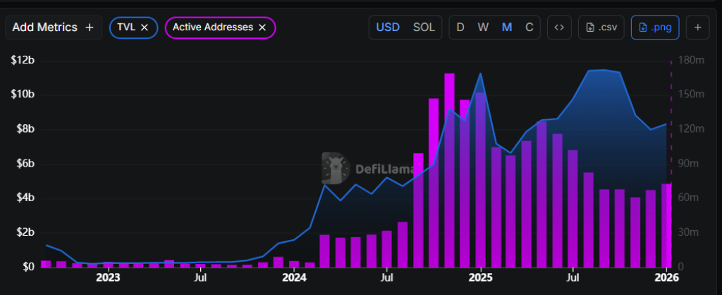 Meanwhile, institutional interest in Solana has surged over the past year. Multiple Solana-focused exchange-traded funds have launched, and several treasury companies are spending billions of dollars accumulating SOL.