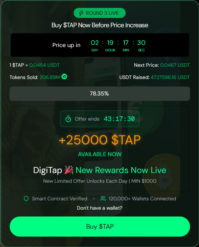 Digitap has already accumulated over $4.7 million after selling more than 206 million tokens. This demand proves that the market is craving for a banking solution that works. Thus, the project’s banking utility makes $TAP the best crypto to buy today.