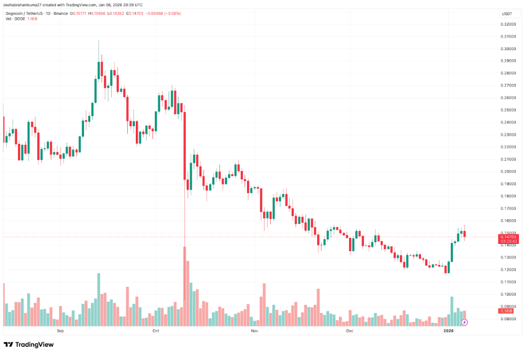 The Dogecoin price outlook has improved, with the token having a 21% increase in the last seven days as of January 6th. Trading volume has surged to over $2 billion, indicating that retail liquidity is flowing back into the market’s favorite meme. Dogecoin is outperforming the general crypto market and showing green candles on nearly half of the last 30 days.