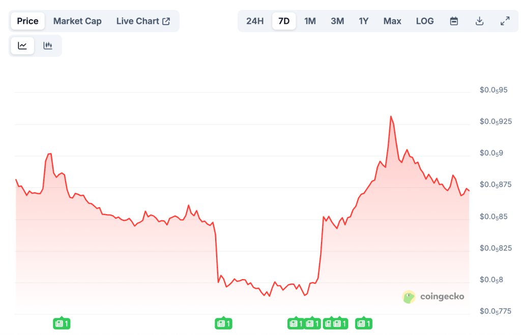 SHIB was still trading at $0.000008783, down 1.75% on December 4th. Volume is rising, up 40.8% to $233 million, but supply pressure remains high.