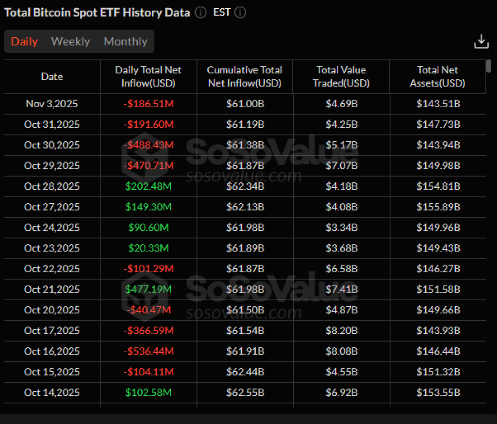 The reason behind this is yet unclear. According to Wintermute, liquidity is growing at a global level, but its influx into crypto is momentarily limited. This also applies to ETF inflows, which also turned negative. According to SoSoValue, the net inflows are at a negative $186M.