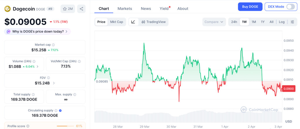 According to CoinMarketCap, DOGE trades near $0.090 after dropping 2.7% alongside the broader market selloff, with analyst Trader Tardigrade sharing a fractal analysis showing a historical bullish breakdown pattern. If the fractal completes, the dogecoin price prediction targets $1.60 to $2.20.