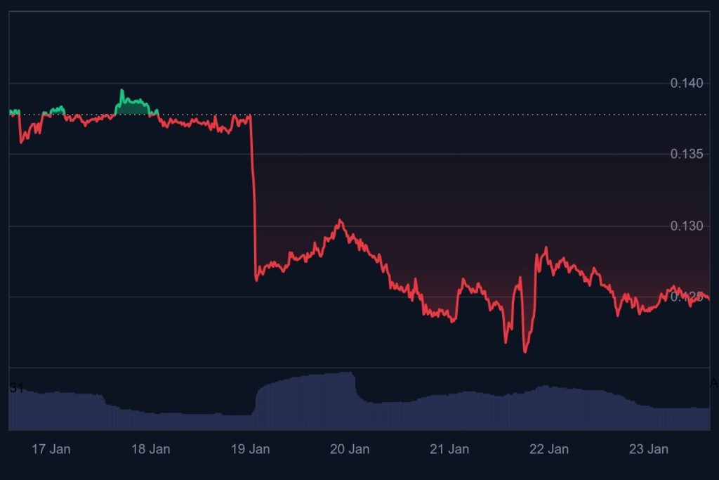 The Dogecoin price prediction has lost ground this week, showing the renewed downside momentum in the meme coin sector. After trading at $0.136 on January 17, DOGE declined and was changing hands near $0.124 on January 23, marking roughly a 9% drop over six days.