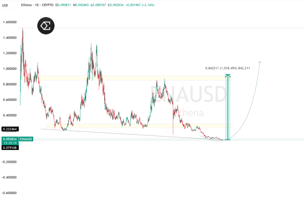If ENA breaks and holds above $0.10, the next stops could be $0.12, then $0.14, a 30–50% potential move from current levels. If momentum fades, the token could slip back toward $0.085 or retest the $0.079 lows.