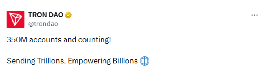He predicts that the price of Tron could skyrocket to high levels if it crosses the $0.31 region. In another tweet, Umair Crypto stated that the Tron coin price has to clear the resistance around $0.285 to soar to $0.31. In other news, Tron has crossed 350 million accounts, a sign of growth over the years.