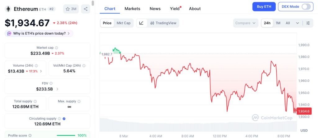 The ethereum price prediction outlook darkened after BitMEX cofounder Arthur Hayes warned investors not to celebrate the recent rally. Bitcoin jumped 8% to nearly $74,000, but Hayes says crypto still moves closely with tech stocks and the jump could be temporary.
