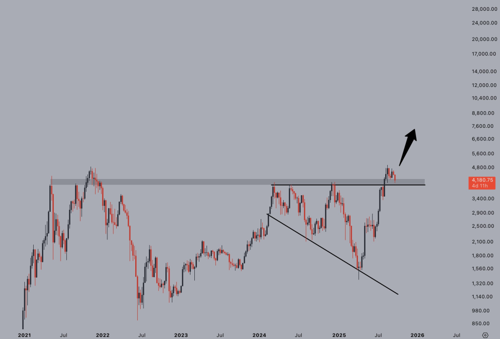 For now, the market is watching whether ETH can hold its new floor. A decisive close below $4,000 would weaken the bullish case and could trigger a deeper correction. But holding this level – or bouncing strongly – would confirm that the breakout remains intact.