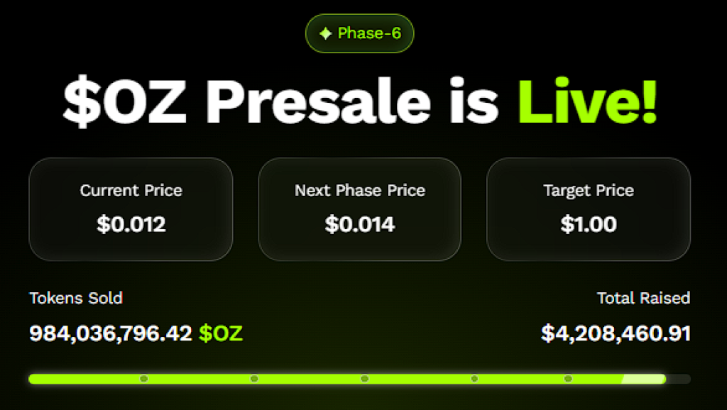 While Ethereum is a top pick for many, Ozak AI is emerging as one of the most talked-about early-stage projects with massive upside potential. Currently in its 6th OZ presale stage at $0.012, Ozak AI has already raised over $4.1 million and sold more than 980 million tokens, reflecting strong demand from early investors.