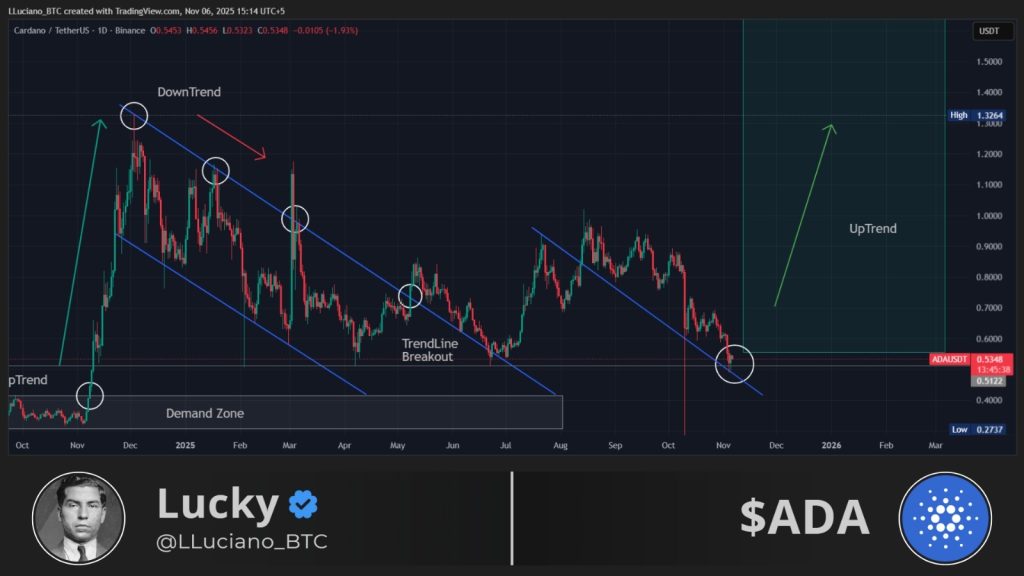CryptoRand pointed this out, saying ADA is “respecting” this area and already showing a strong bounce. Lucky echoed that sentiment, noting ADA is “looking good here.”
