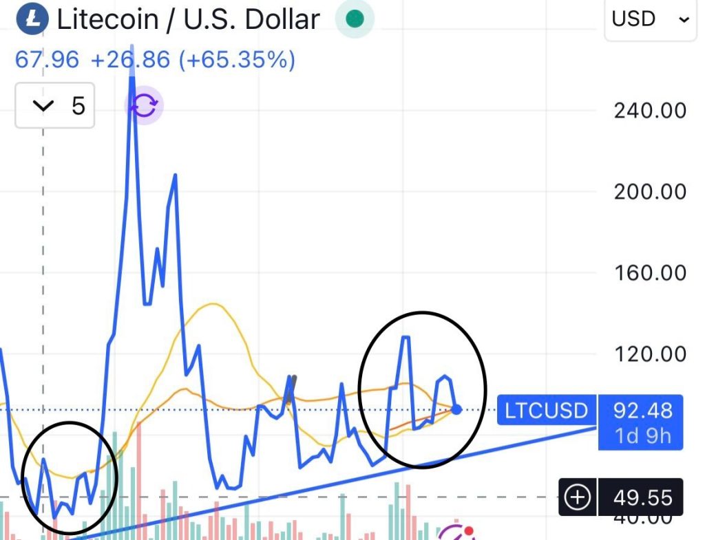 If LTC price follows that playbook, it doesn’t just break $100 or $200, it skips straight into the four-digit range.
