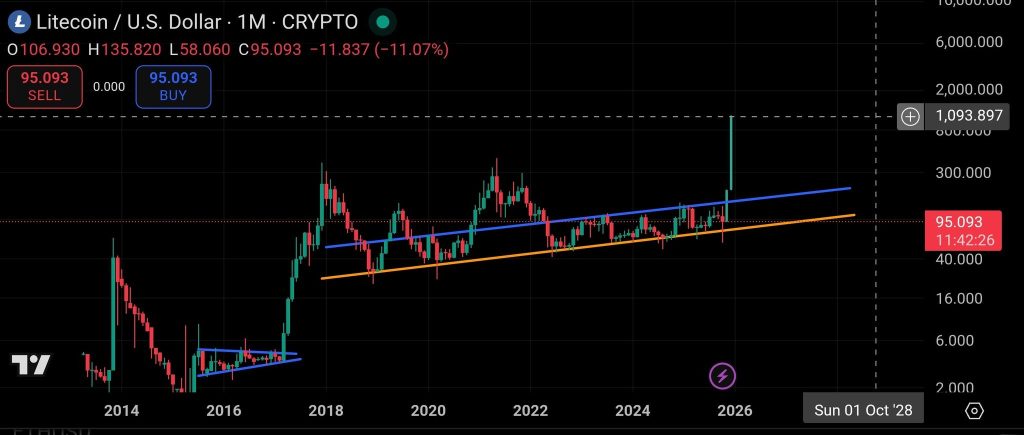 Right now, Litecoin price trades near $98, but multiple chart watchers say a move above $1,000 is not only possible, but it might be closer than anyone thinks.