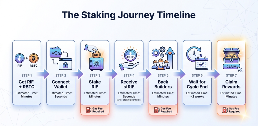 The path from wallet to reward is clear: acquire RIF and RBTC, connect your wallet to RootstockCollective, stake your RIF to receive stRIF, allocate backing to builders you believe in, and claim your rewards every two weeks.