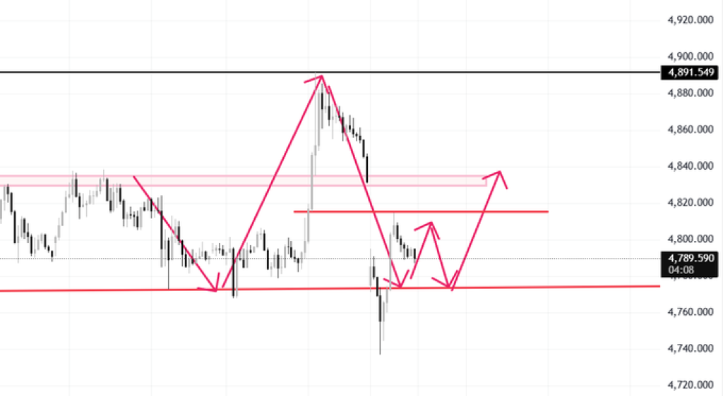 If things turn the other way and the gold price slips below support, then focus moves to around $4,740. That’s the area where buyers are expected to step in more aggressively. For now, that hasn’t happened. The structure is still holding, and there’s no clear breakdown yet.