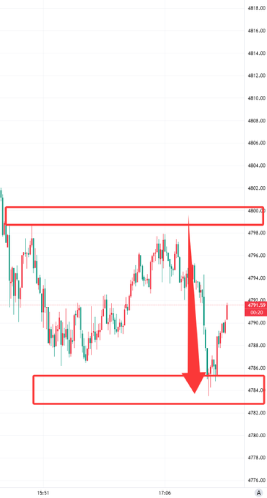 The lower timeframe chart adds more clarity. It shows a sharp move down into the $4784–$4786 area, followed by an immediate rebound. The candles in that zone show strong rejection, with quick recoveries and visible buying pressure. This kind of reaction often signals that demand is active and waiting.