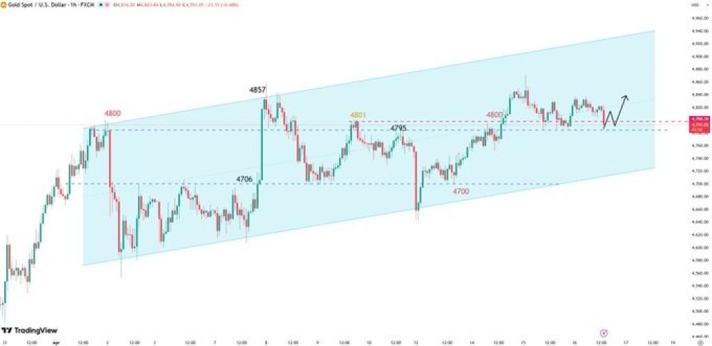 The second is resistance between 4830 and 4850. This is where sellers have been active. If gold keeps getting rejected there, it may continue ranging or even dip again.