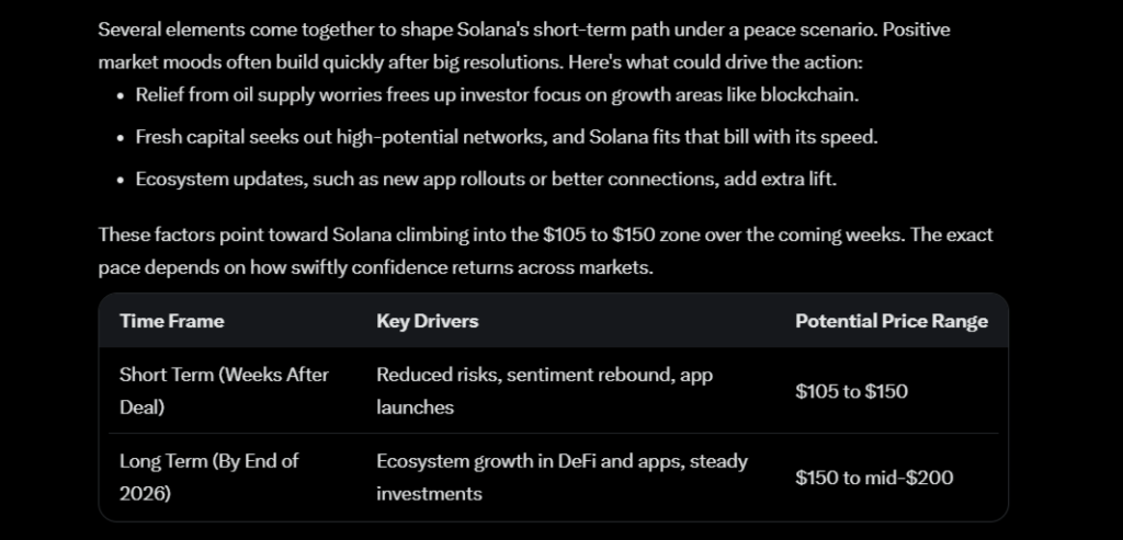 A reduction in geopolitical tension could quickly support Solana’s recovery potential. Equity markets often rally during periods when global risks decline. Cryptocurrency markets typically follow that broader shift.