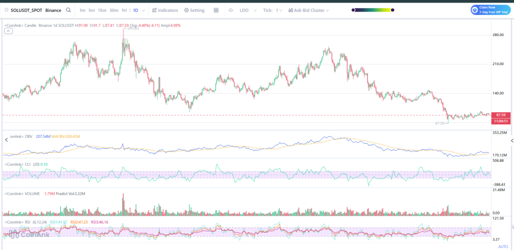 Solana’s chart is showing a story of resilience. The price is trading around $87.59, and the chart indicates it has found a strong base.