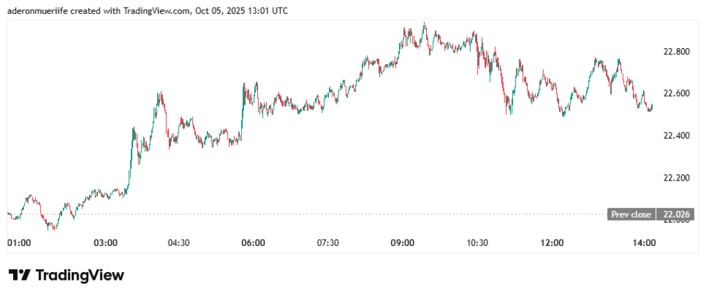 LINK is trading near $22.55, up from $22.03, with support at $22.00 and resistance at $22.80. Chainlink’s growing influence through its Cross-Chain Interoperability Protocol (CCIP) and real-world asset integrations has made it a backbone for decentralized finance infrastructure.