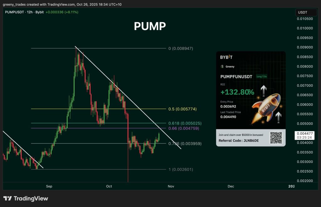 In the short term, as long as $0.0039 holds as support, the setup stays bullish. A breakout and retest above $0.0058 would likely kick off another rally, possibly sending PUMP price toward $0.008-$0.009 in the coming weeks.