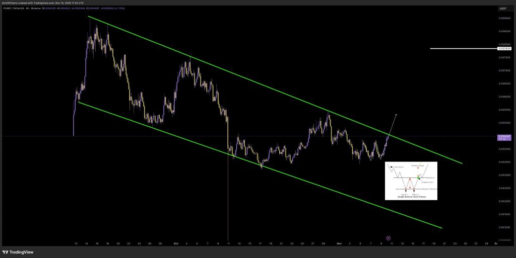 On top of that, Don’s chart breakdown added even more fuel. He pointed out that PUMP has formed a clean W-pattern, which is one of the most reliable reversal patterns in crypto.