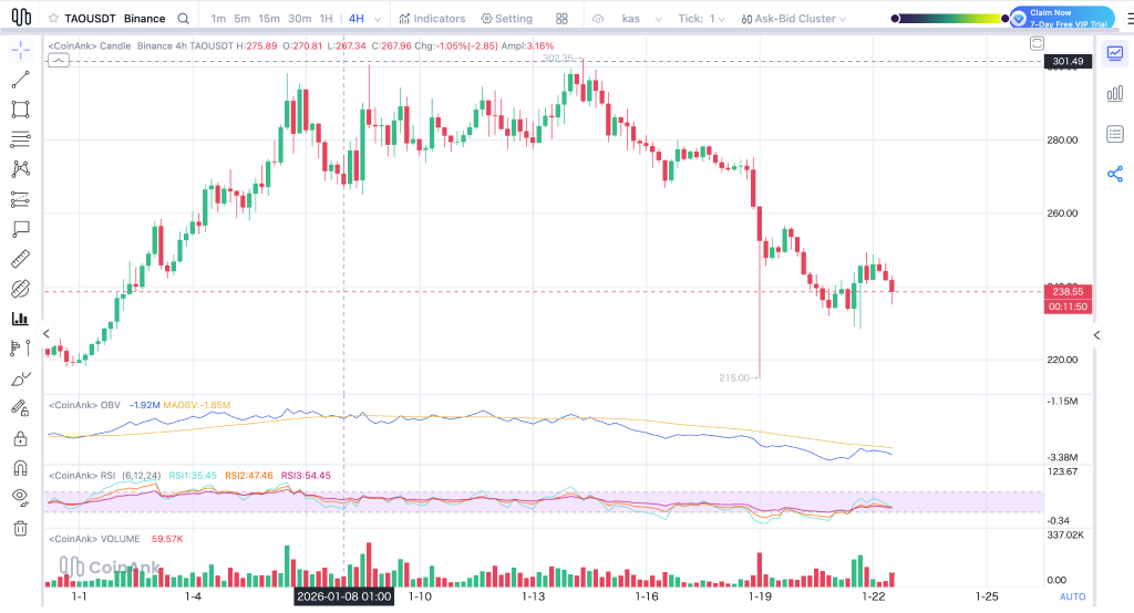 For sentiment to really turn, TAO would first need to reclaim the $260 area and then show strength above $280. Until that happens, the market is likely to stay careful.