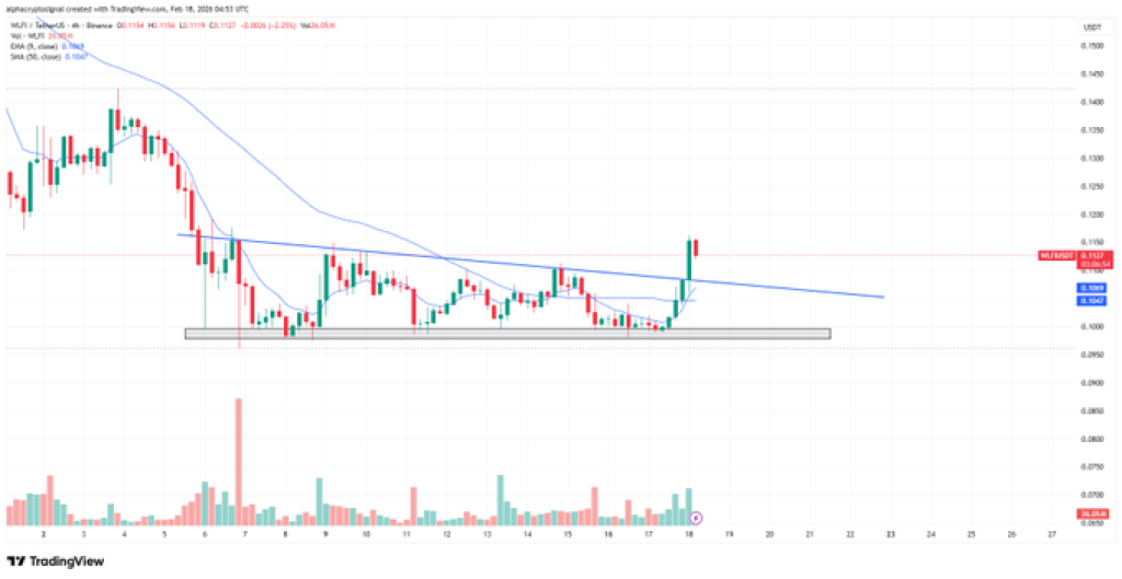 On the technical side, the WLFI price has pushed above a falling trendline, breaking out of a descending triangle pattern.