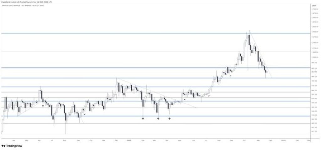 Moreover, if the BNB price can’t push through $900, it may slide back toward $800 again. That level needs to hold – losing it could invite a deeper drop toward $750.