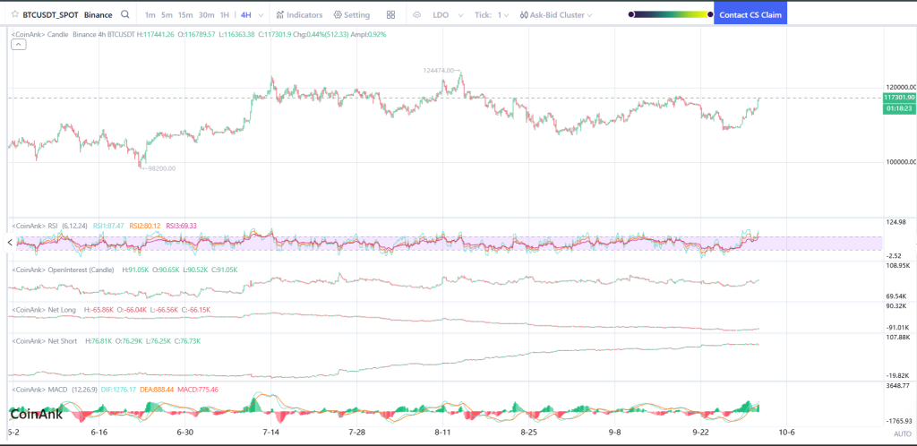 Looking at the 4H chart, Bitcoin price is recovering from its late-September dip toward $110K and is now eyeing resistance near $118K.