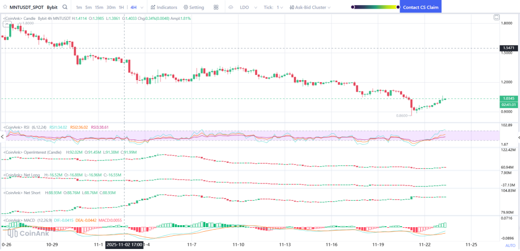 The Mantle (MNT) price is trying to find its footing again after weeks of slow, controlled trading. The token is now back above $1.03 after dipping to $0.86, and buyers finally seem interested again.