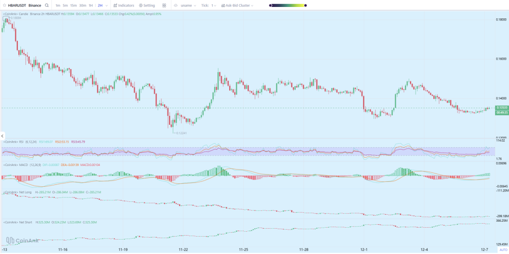 - Base case (most likely): With RSI mid-range, MACD stabilizing and shorts still heavier than longs, the HBAR price looks set for a consolidation week rather than a trend reset. A reasonable range for the next 7 days is $0.13–$0.15, with price chopping sideways as the market digests the Georgia news and broader altcoin sentiment.