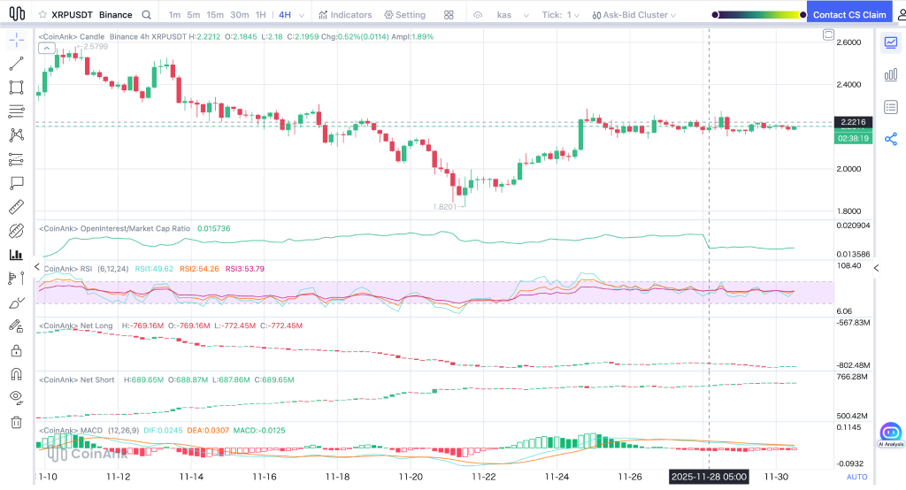 XRP enters December with some of the calmest ranges of trade in weeks. Since the late-November bounce from $1.82, the XRP price has consolidated at approximately $2.20, but indications are that this phase of quiet trading might not last much longer.