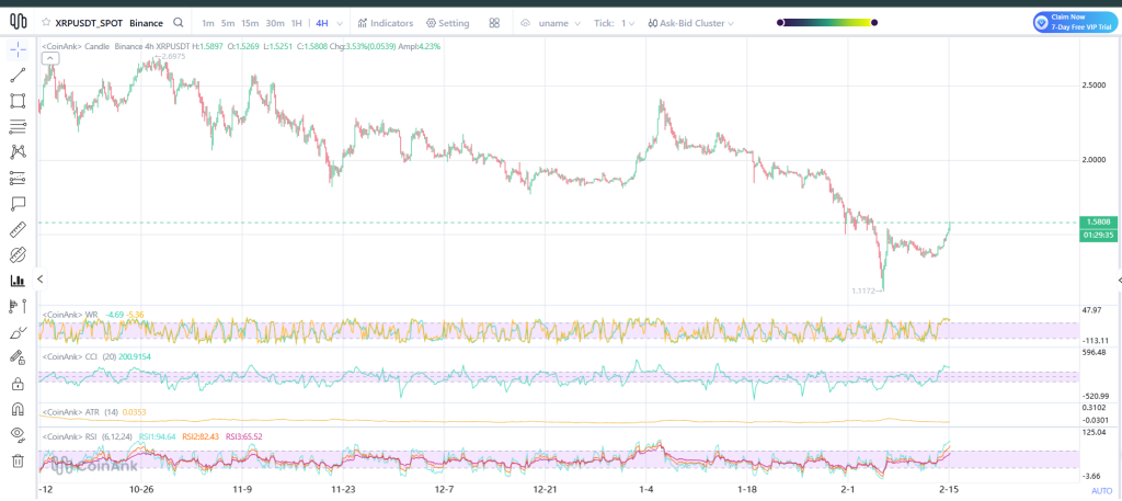 Since then, the XRP price has started stabilizing and pushing higher, with XRP now reclaiming the $1.55–$1.58 zone. This is the first serious attempt at a recovery mechanism after the major breakdown, but bulls still have to prove that this move has underlying strength.