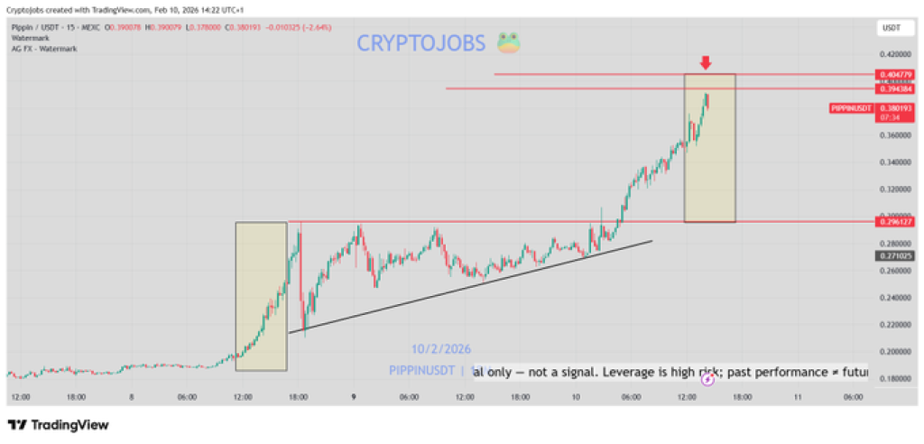 That’s how meme coins move when the crowd locks onto one ticker at the same time. PIPPIN wasn’t climbing slowly. It was being chased.
