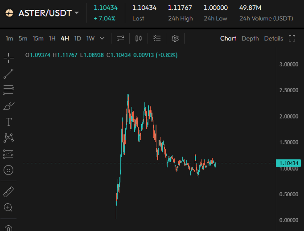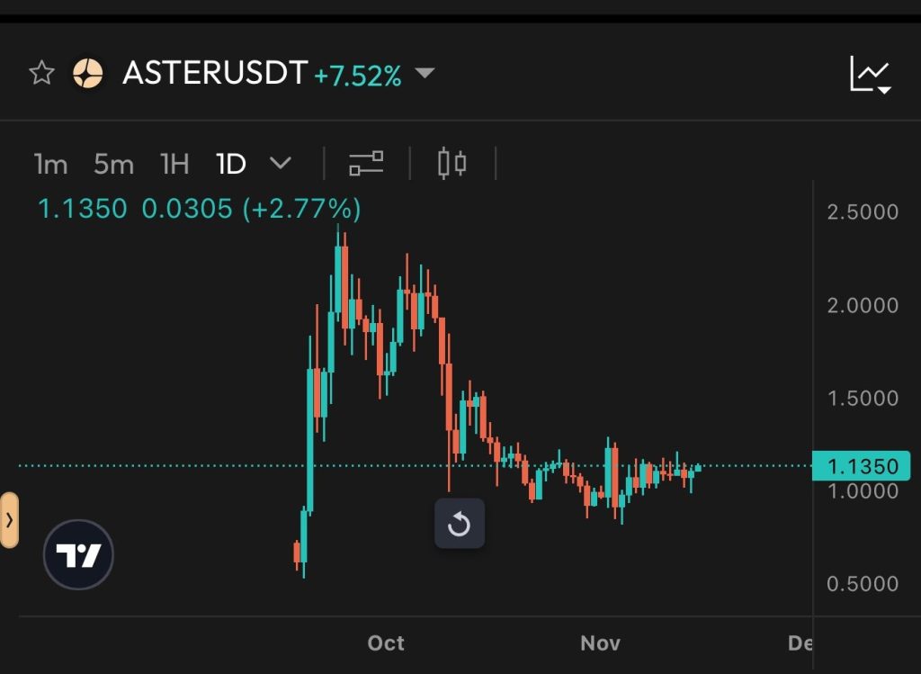 When ASTER launched, it moved like a rocket. The price shot up, tapped above $2.50, and then spent the next few weeks cooling off and sliding toward the $1 range. That’s where things got interesting. Instead of breaking down, ASTER started holding steady.