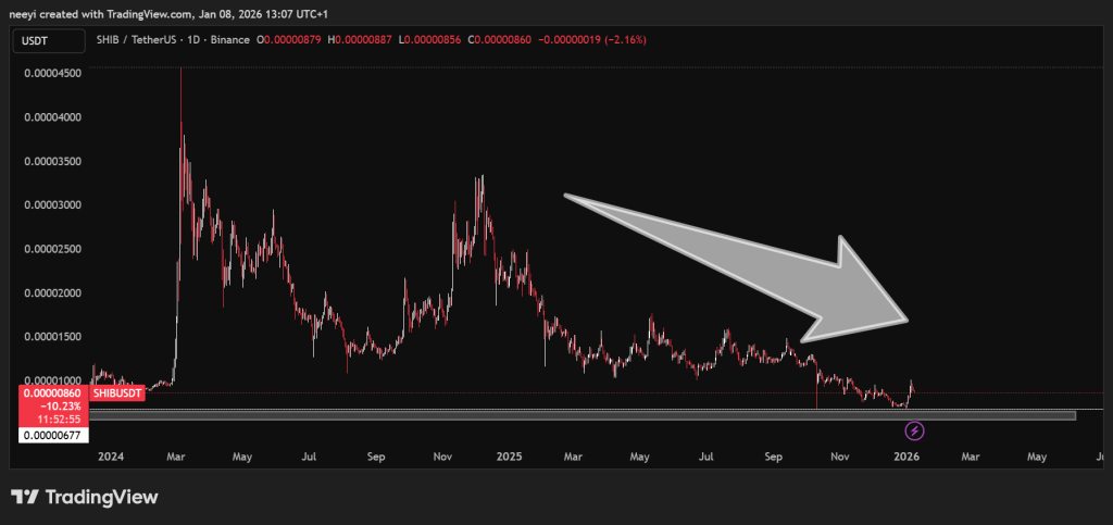 Shiba Inu price action through 2025 reflected a broader struggle across crypto. Many assets failed to find sustained momentum as liquidity thinned and risk appetite faded. Meme coins faced even more pressure as speculative interest cooled.