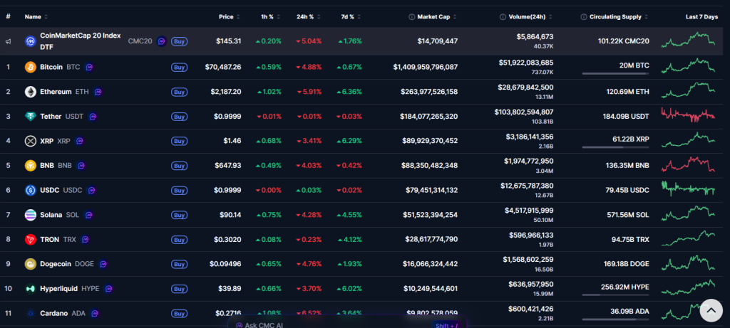 As of March 19, 2026, Hyperliquid’s market cap sits comfortably around $10.9 billion, while Cardano has slipped to the 11th spot with a valuation near $10.45 billion.