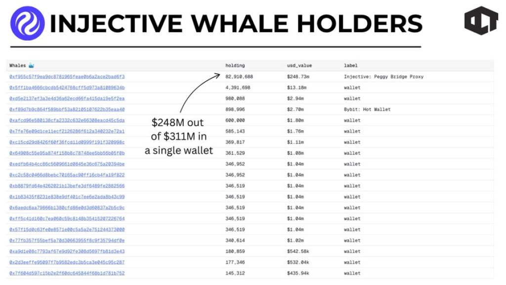 Our Crypto Talk also points to supply distribution as an additional pressure factor. A large portion of INJ sits within infrastructure linked wallets tied to bridge or protocol mechanics.