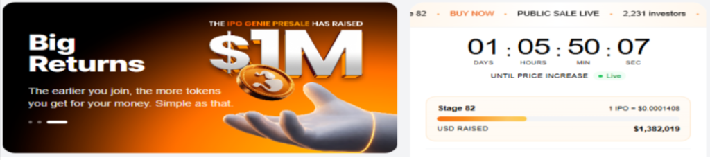 • IPO Genie ($IPO) gives retail investors access to private market deals that usually require a $250,000 minimum entry. The presale is now at Phase 81 with over 2,300+ wallets joining.
