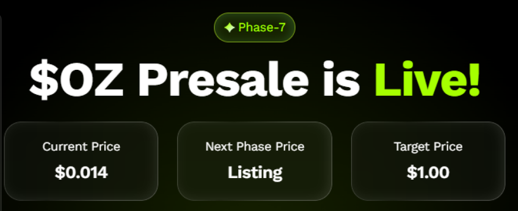 • Ozak AI ($OZ) has raised over $6.7M in presale funding, offering AI-powered financial prediction tools and real-time analytics feeds.