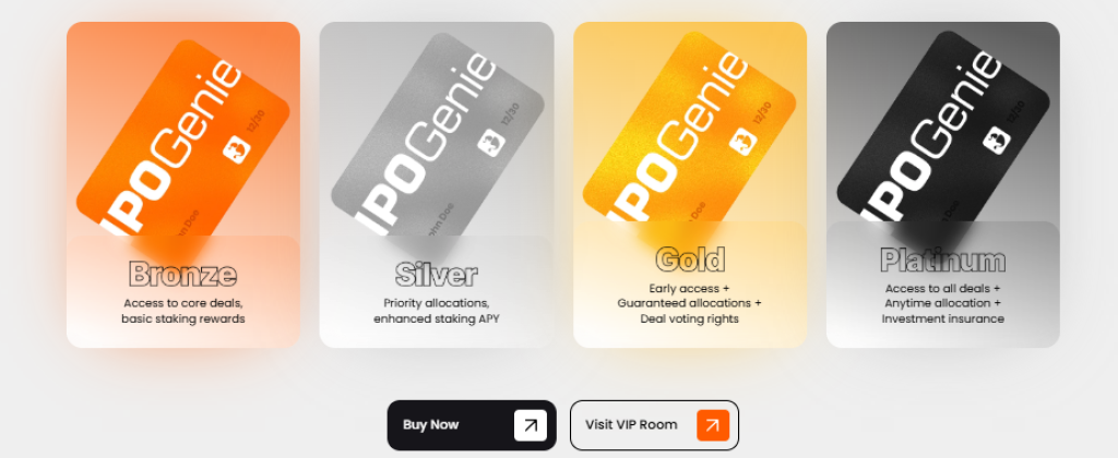 Holding $IPO isn’t speculation. The token operates as an access key to IPO Genie’s private market ecosystem through a tiered system: Bronze, Silver, Gold, Platinum.