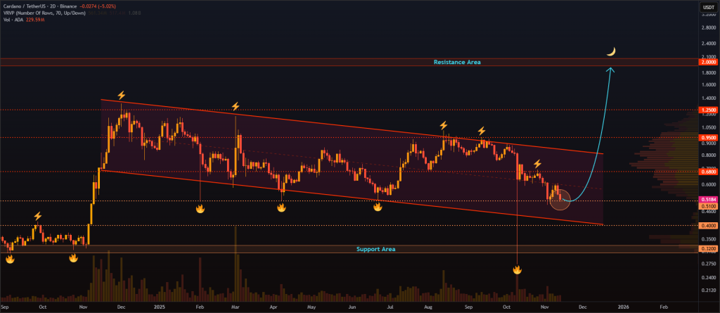 A steady slide often feels like background noise until it reaches a point where the chart starts telling a different story. ADA has spent the past few weeks drifting downward and now trades near $0.50. However, it looks like something is brewing in the background, and the price might be getting ready for some big moves.