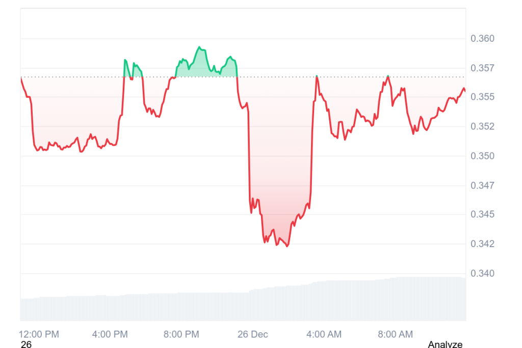 The ADA chart tells a familiar story. Cardano experienced a steep drop earlier in December, dipping towards the $0.34 level only to revert to its original trend quickly. Since then, the market has struggled to stay above $0.36 in an attempt to breach through.