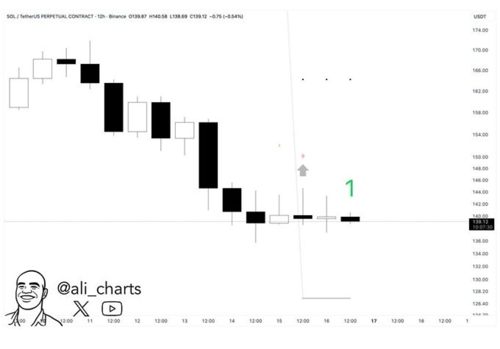 Analyst Ali pointed out that a key momentum indicator has flashed a buy signal on the 12-hour chart, which often shows up when a downtrend is running out of steam. It doesn’t confirm a full reversal, but the timing is interesting.