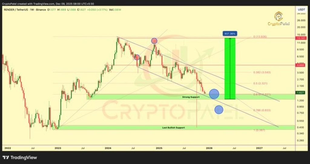 For now, the RENDER price is at a turning point. If the key zone holds, Patel believes the price could be gearing up for one of its biggest recoveries in years.Always DYOR.