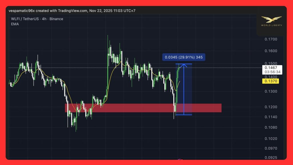 The price action tells the story pretty clearly. The WLFI price once again bounced off the $0.12 demand zone, an area that has repeatedly acted as a safety net for buyers.