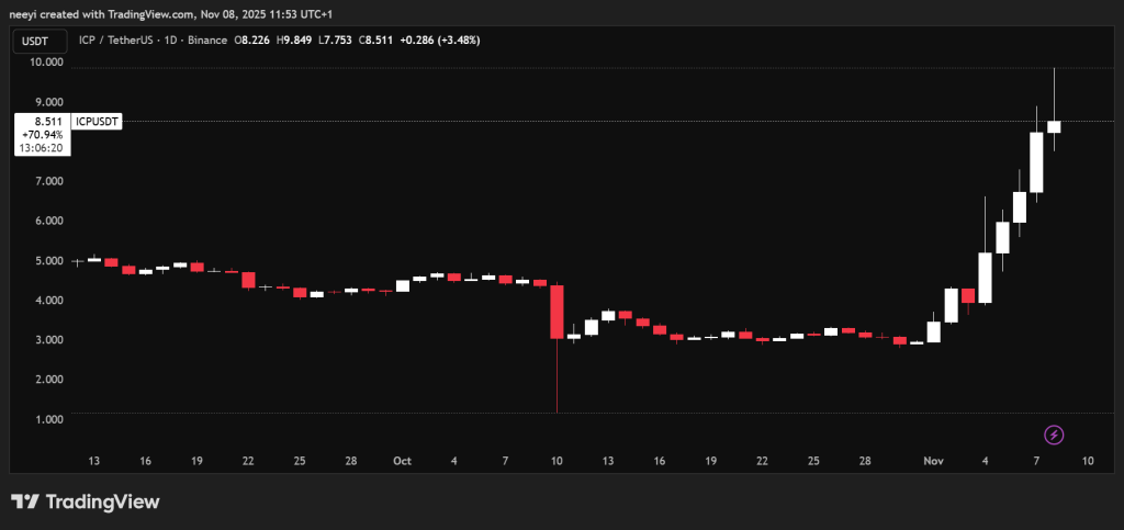 Internet Computer may still see more short-term upside as late buyers try to capture some gains. If momentum remains, its price could climb from around $9 to as high as $12 or even $14.5. However, if the broader market turns bearish, the token might struggle to hold its gains. A deeper retracement could erase more than half of the profits made during this surge.